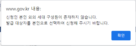 발급대상자에서 다른세대구성원으로 선택할 경우 인증서 로그인 창이 뜹니다. 인증 로그인 해주시고 진행하시면 됩니다.